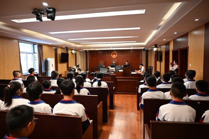 在讲解员的引导下,学生们先后参观了诉讼服务中心、“龙法和”云法庭、调解室、审判法庭、党建活动室等场所,让大家对法院的工作有了更直观、更深刻的认识。