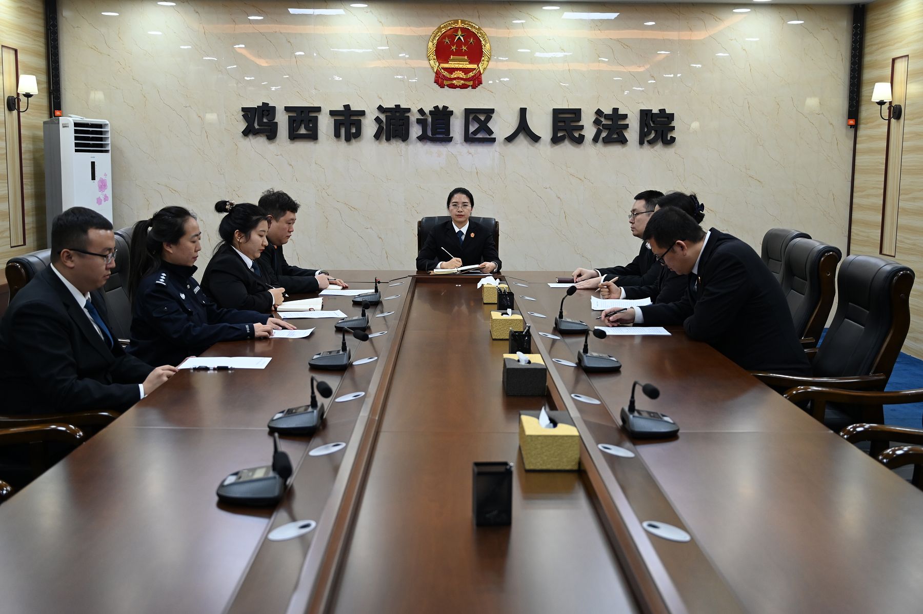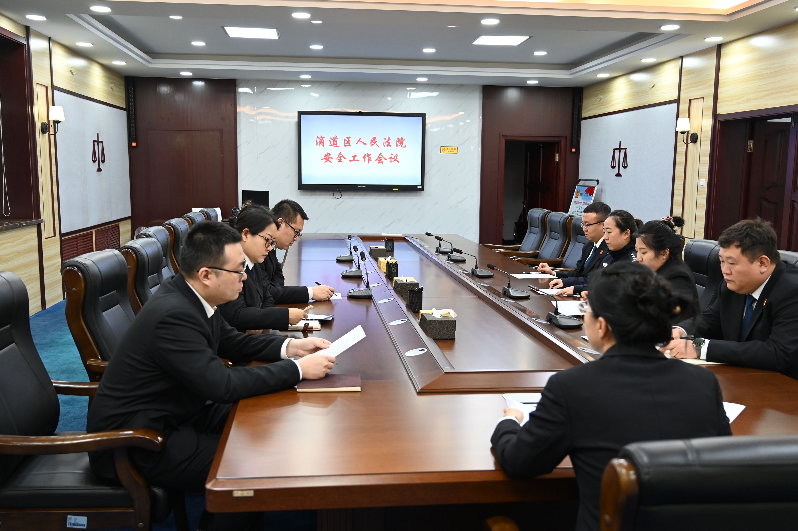 12月18日,滴道区人民法院召开2025年度安全工作会议,会议围绕警务安保、机关安全、应急处突、消防安全、网络安全、信访安全等方面,总结2025年安全工作情况,部署2026年安全工作方向。会议由副院长高雪峰主持,各庭科室负责人参会。