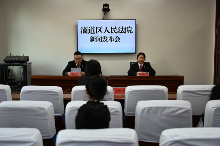 近日,滴道区人民法院召开“优化营商环境,助力企业健康发展”新闻发布会,全面通报2025年以来在立案诉服质效提升、矛盾纠纷多元化解等领域的工作成效,就企业代表聚焦的立案流程简化、要素式起诉状等问题逐一解答。区有关企业代表出席发布会。发布会由滴道区人民法院政治部主任朱涛主持。