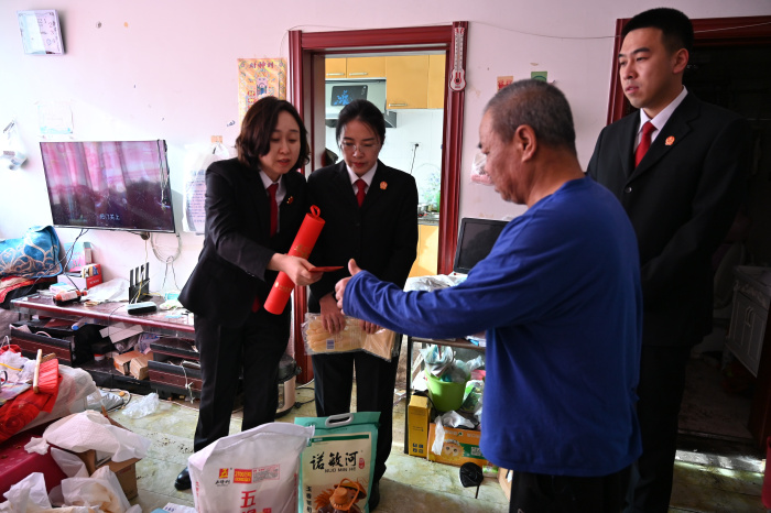 在2026年春节来临之际,滴道区人民法院、光华社区联合开展“双报到”点亮群众“微心愿”志愿服务活动。2月7日上午,院长杜平、副院长高雪峰等一行五人走进光华社区,送去“微心愿”礼品与慰问金,把法院党员干警的真情实意送到群众心坎上。