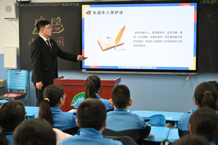 课堂上,王泽龙结合青少年身心特点和校园实际,通过以案释法的方式,对《中华人民共和国未成年人保护法》《中华人民共和国预防未成年人犯罪法》等相关法律法规进行了深入浅出的讲解。同时,围绕校园生活中常见的违纪违法行为进行案例剖析,并结合禁毒、反邪教宣传内容,向同学们普及毒品和邪教的危害,引导大家增强法治意识和规则意识,学会明辨是非,自觉远离毒品、抵制邪教,树立健康向上的价值观,努力做到知法、懂法、守法、用法。